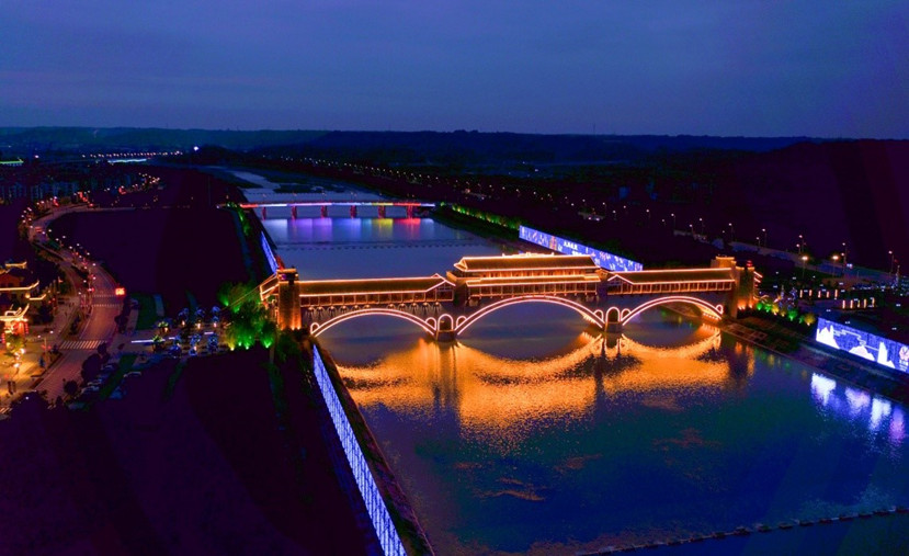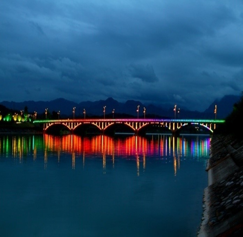 作為此次新北川縣城亮化的縱軸—— 禹王橋、西羌南橋、北橋和安昌橋和永昌橋則展現(xiàn)出更具層次感的燈光效果