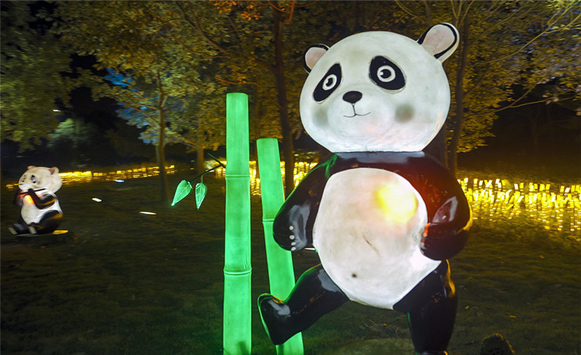 每一個公園還有自己獨特的光定位和光主題,比如,華體科技就專為鳳翔湖公園打造了獨具成都特色的大熊貓互動燈光裝置,讓夜色下的公園夜色更加活潑和靈動。