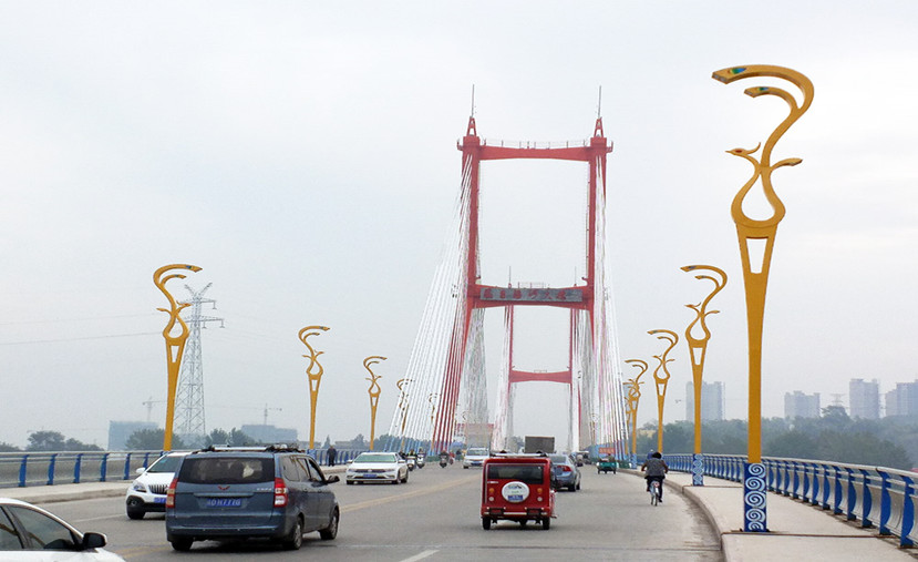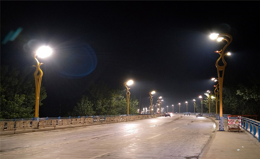 安裝在鳳臺縣淮河大橋上的“鳳舞九天”地域系列文化路燈,白天猶如腳踩祥云的鳳凰,也寓意鳳臺縣經(jīng)濟(jì)發(fā)展社會穩(wěn)定的太平盛世。