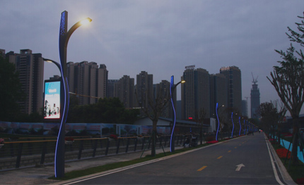 2019年3月,在成都造公園城市、建設(shè)環(huán)城生態(tài)區(qū)的背景下,作為繞城高速環(huán)線的一部分,三圣花鄉(xiāng)也成為了改造升級的重點之一。按照規(guī)劃,三圣花鄉(xiāng)是其中一個重要的新興生態(tài)居住板塊"三圣鄉(xiāng)宜居生活片區(qū)”,而其中的花鄉(xiāng)農(nóng)居正在打造成為集高端商業(yè)、文創(chuàng)、藝術(shù)創(chuàng)意等新經(jīng)濟為一體的“三圣生態(tài)文藝展示區(qū)”華體科技為花鄉(xiāng)農(nóng)居提供了“流光”、“山水閣”兩款智慧路燈,安裝在園區(qū)四條道路上。