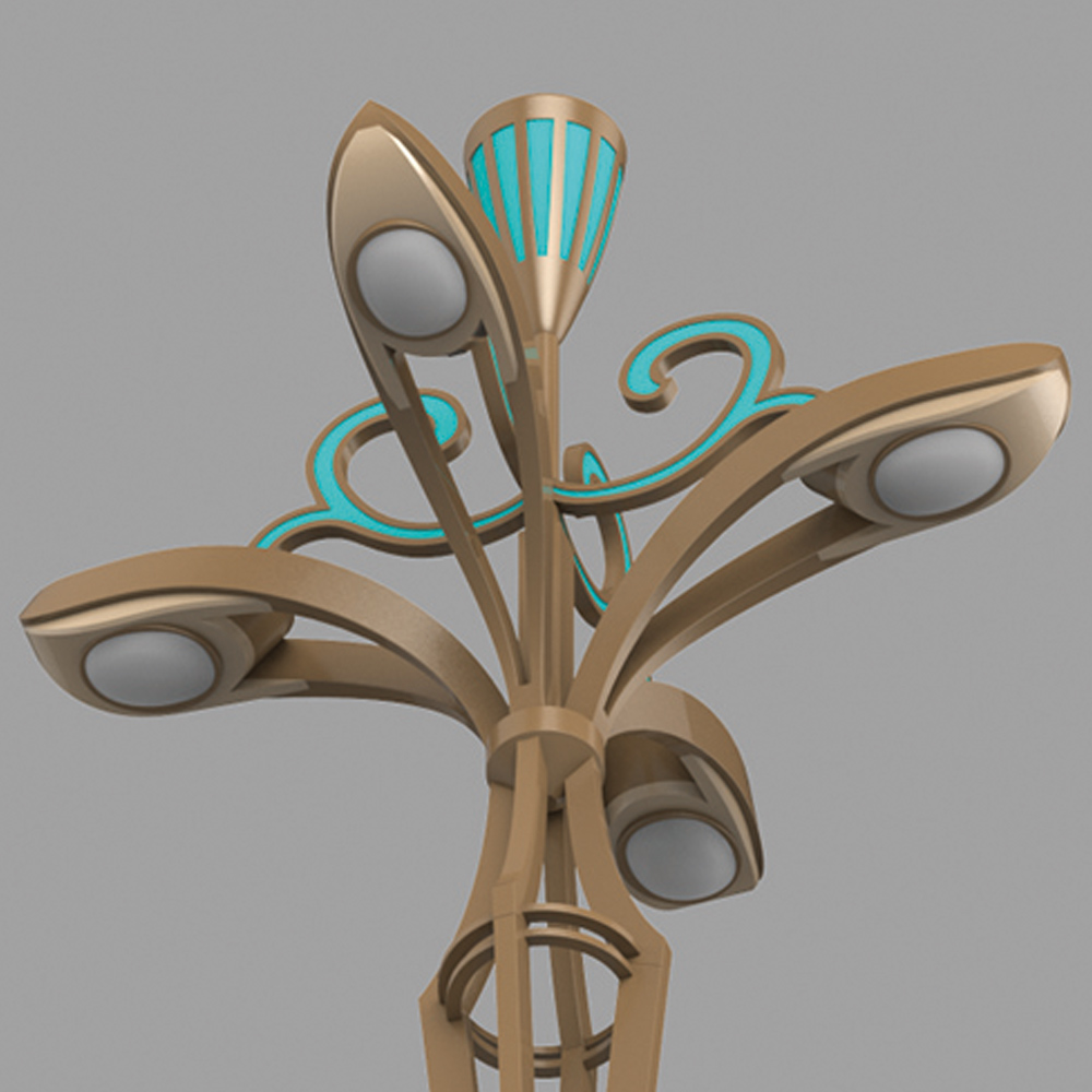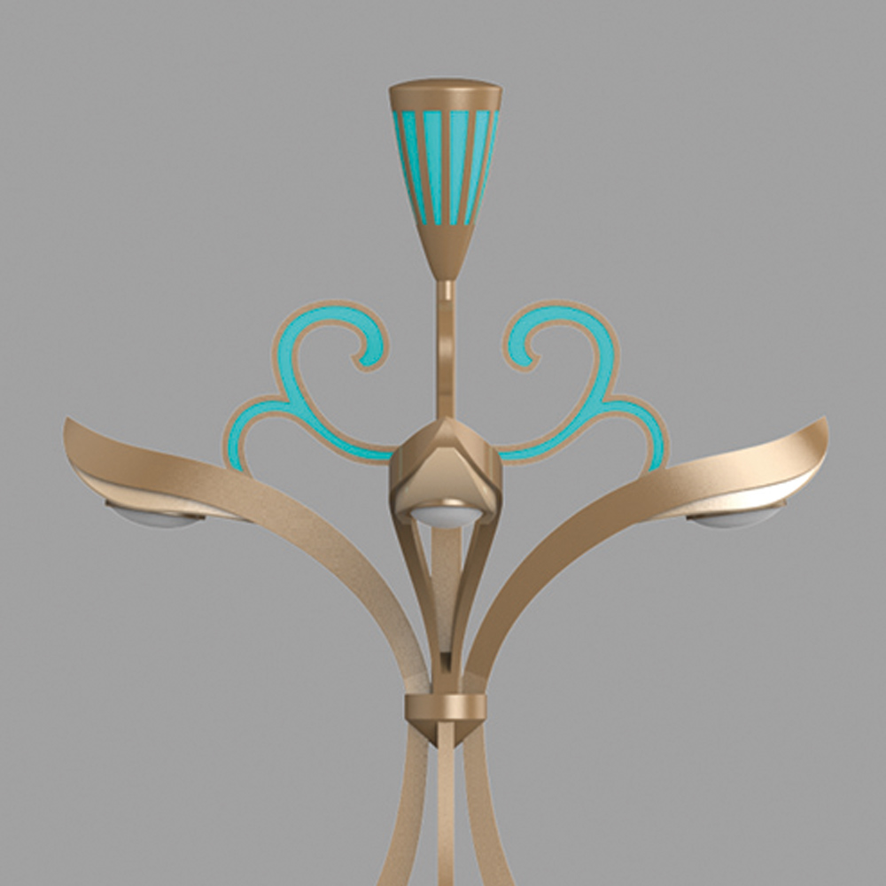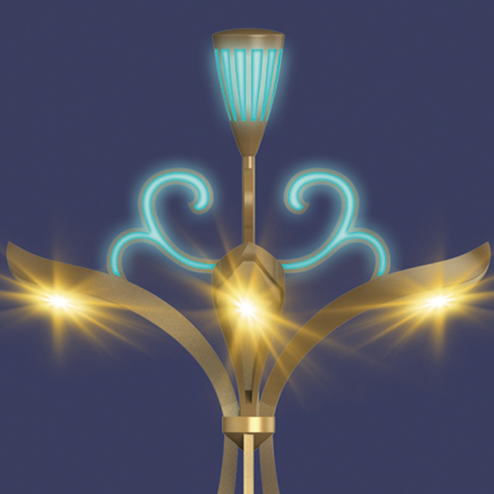燈型以蓮花為創(chuàng)作元素,經(jīng)過設計者的提煉,將蓮花與花瓶的形態(tài)相結(jié)合;