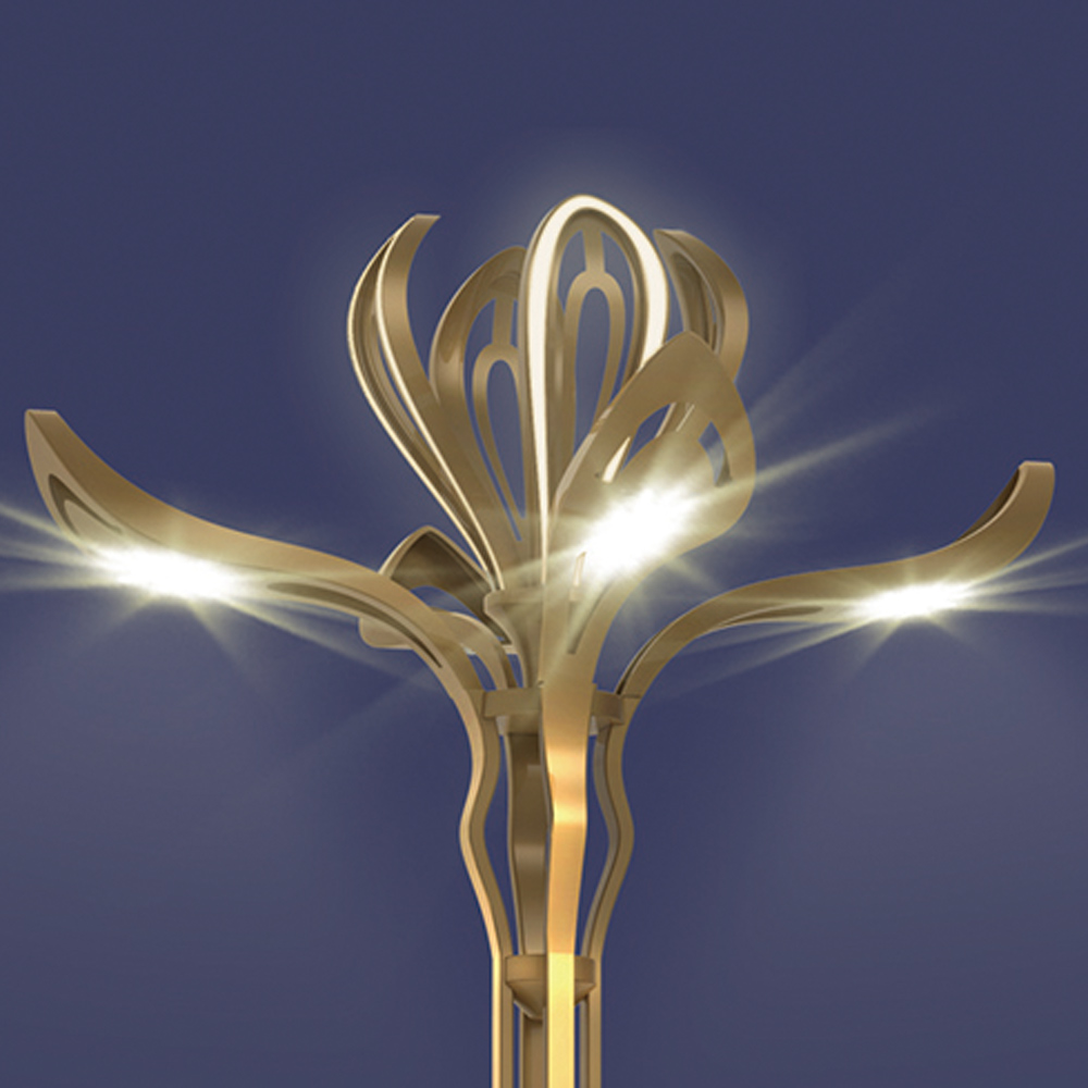 改變了以往單一的花燈結(jié)構(gòu),而是將花瓣根據(jù)不同的需求予以相應(yīng)組合,在花瓣中鑲嵌燈帶,使整燈在夜晚中也能給城市增添光彩;