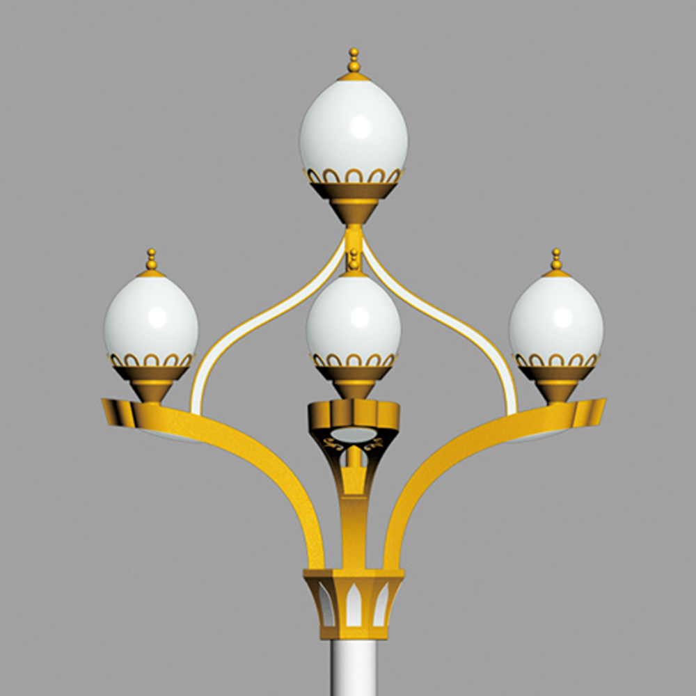 燈型整體以新疆維吾爾伊斯蘭建筑外形特點(diǎn)來(lái)造型,在傳統(tǒng)華燈的基礎(chǔ)上實(shí)現(xiàn)景觀與功能照明巧妙結(jié)合,造型大氣、地域文化氣息濃厚;