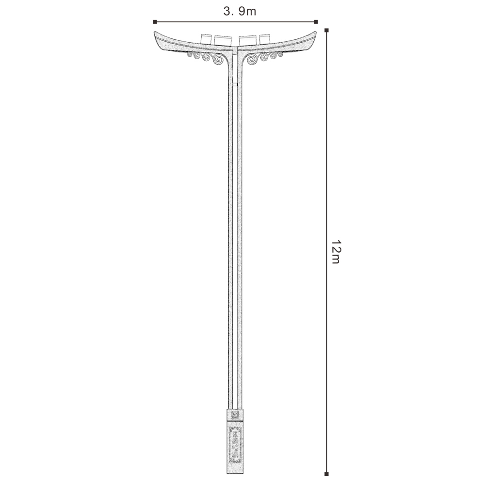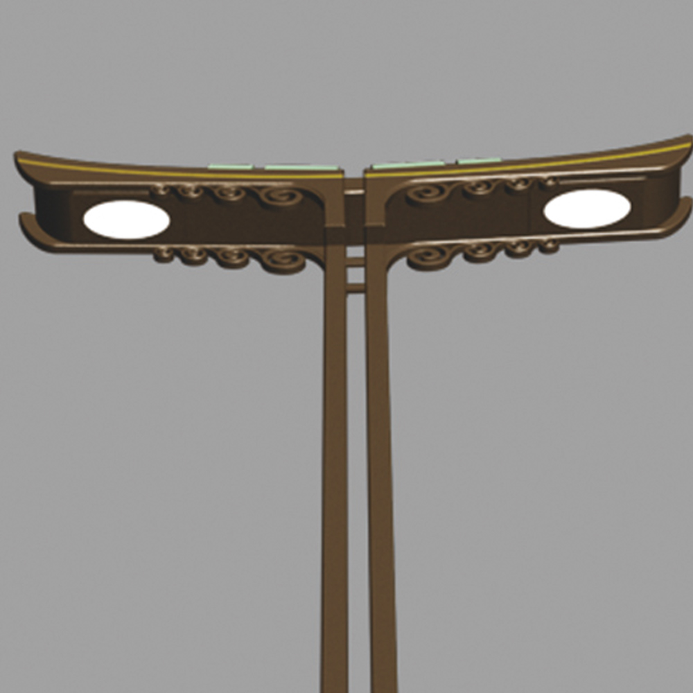 燈型主體、桿體、底座材質(zhì)為金屬鋼件表面熱鍍噴塑,可配光源LED/鈉燈。