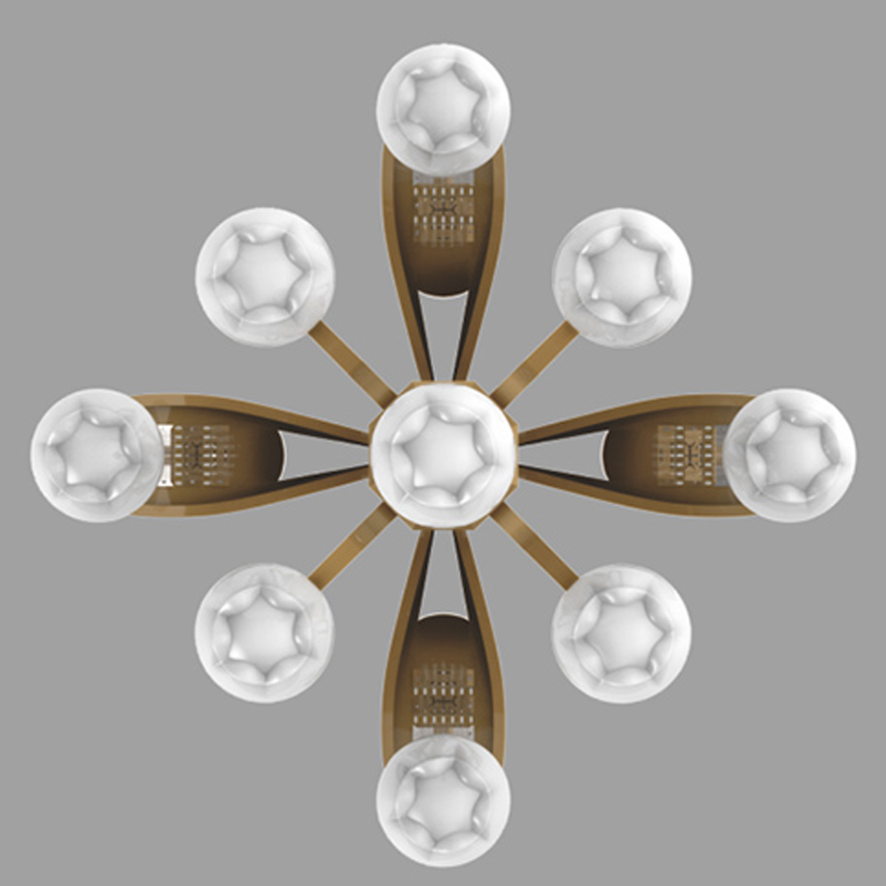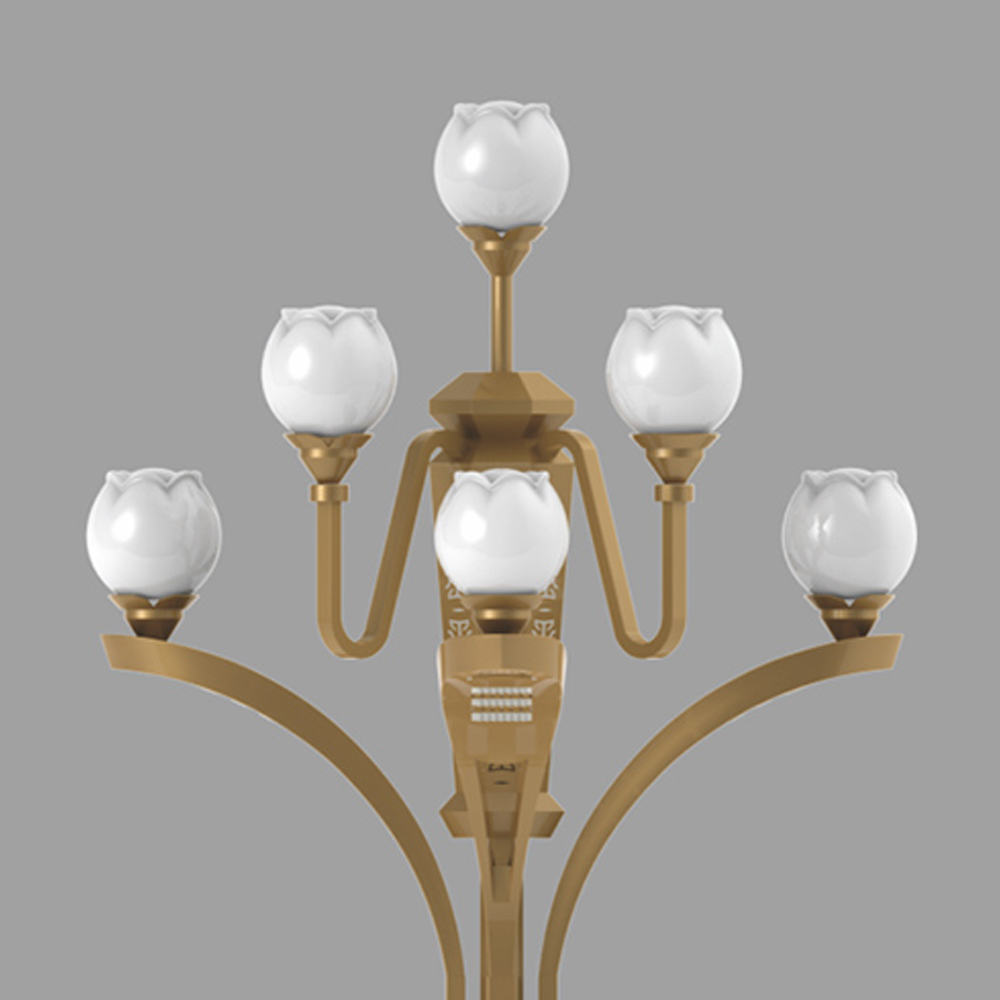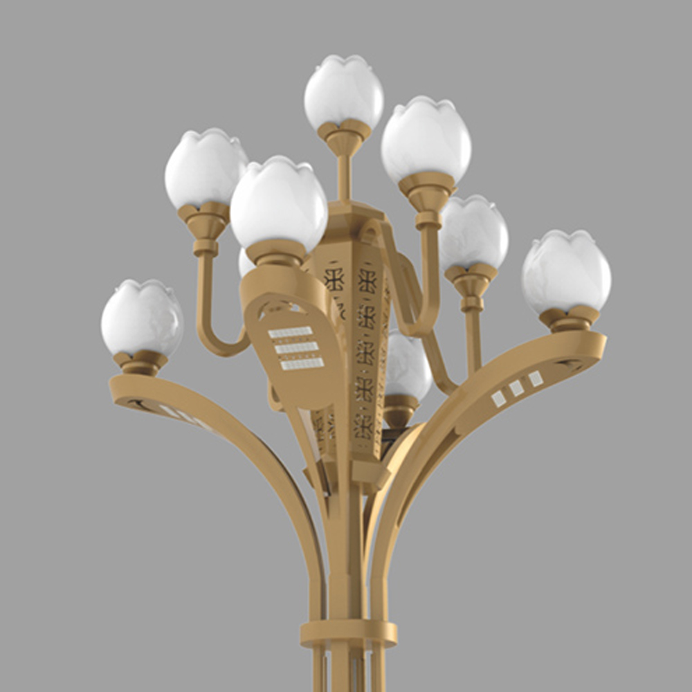 中華燈是一款極具中國特色,外觀大方的多等頭燈具。芙蓉中華燈是在傳統中華燈的基礎上進行了改良,保留其神韻,切加入新的元素,巧妙的運用花瓣的形式,實現了燈桿與燈頭的實體連接;