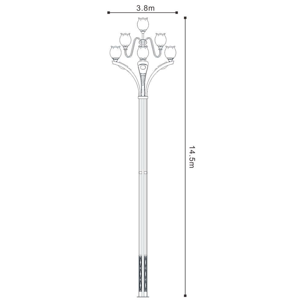 該款燈可以在原有景觀照明基礎上,增加了功能照明,使功能照明和景觀照明完美結合??蓪ED光源巧妙的配置于戶外文化定制燈具中,替代傳統鈉燈及節(jié)能燈光源,使用革命性創(chuàng)新,在不影響使用及美觀的情況下,降低該類裝飾性景觀路燈的功率密度,切可在桿體內側加裝華體單燈智能照明管理系統。