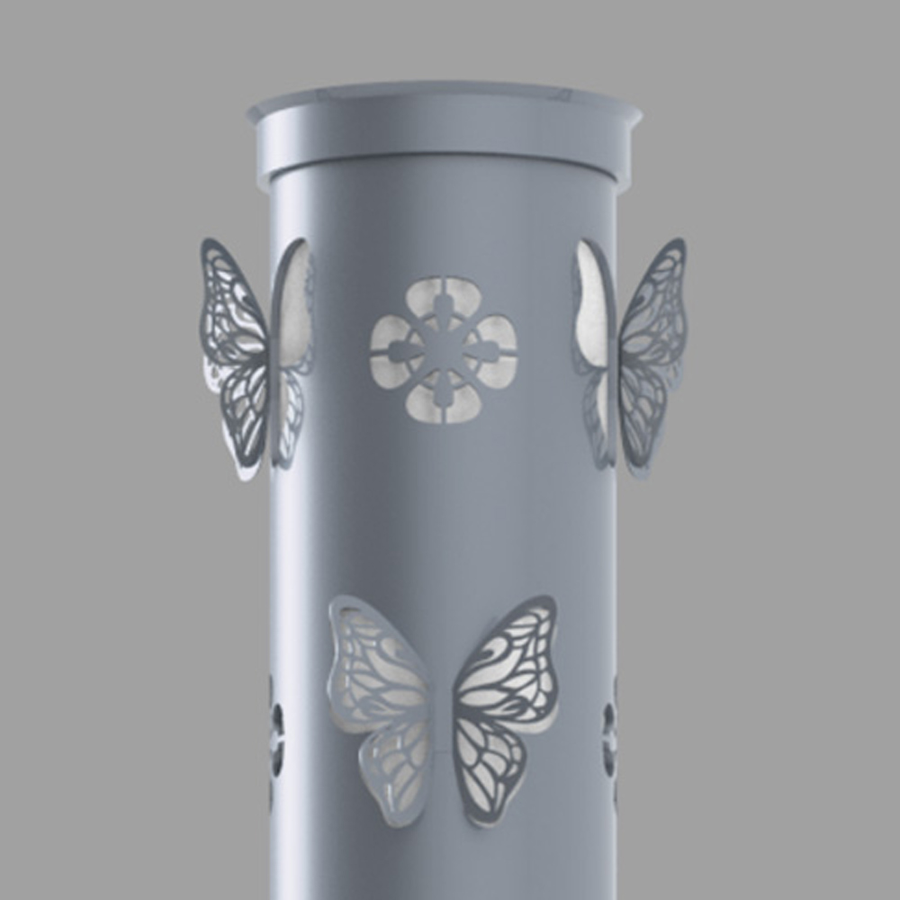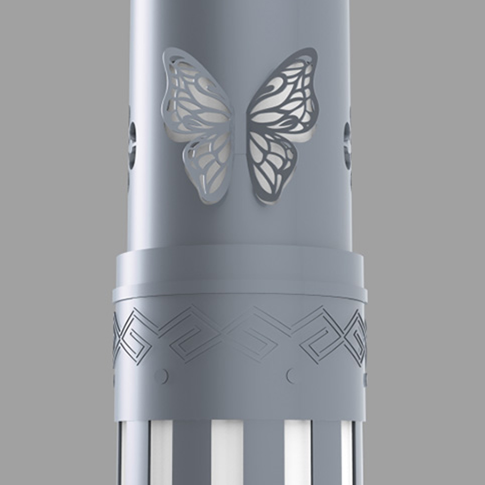 蝶戀顛覆傳統(tǒng)燈具的單一造型,以鏤空花紋的圓柱燈體,配以一只只翩翩飛舞的鏤空“蝴蝶”,整燈顯得十分靈動、精美、大方。